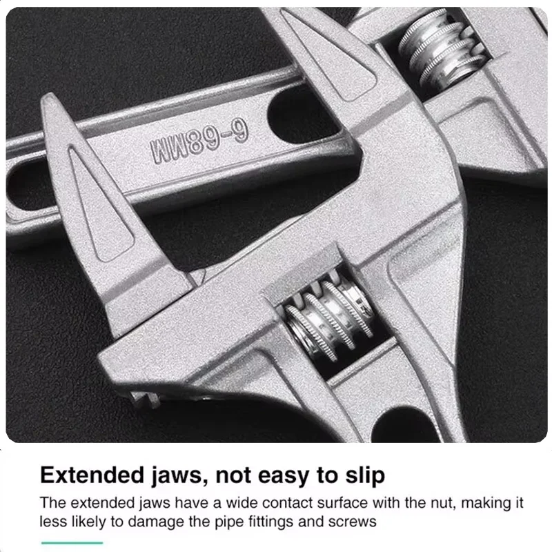 • Enhanced Convenience: Large adjustable opening allows for quick adaptation to different pipe sizes and fittings, saving time and effort during plumbing repairs and installations.