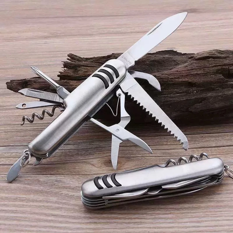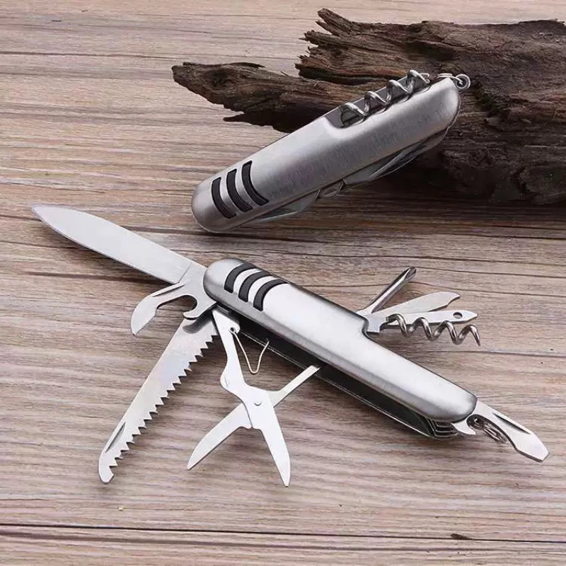 Utility Knife, 11-in-1 Pocket Knife with Screwdriver, Stainless Steel Bottle Opener, Wood Saw Scissors, Outdoor Emergency Tool